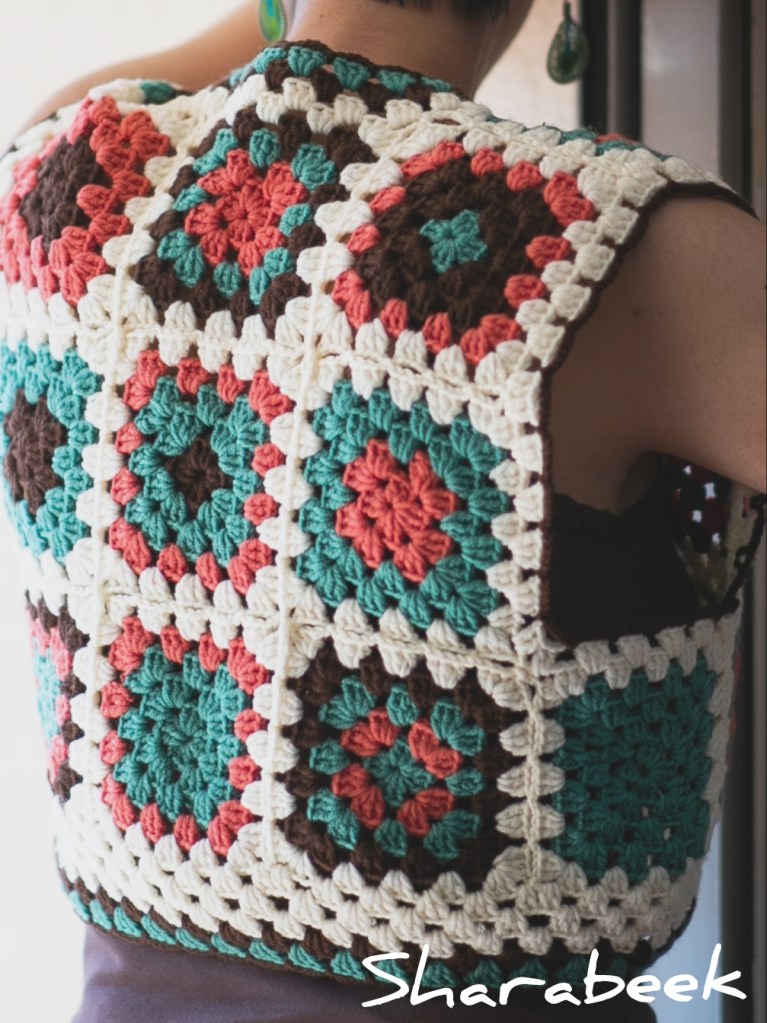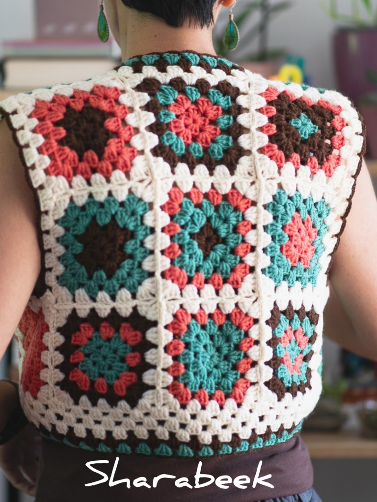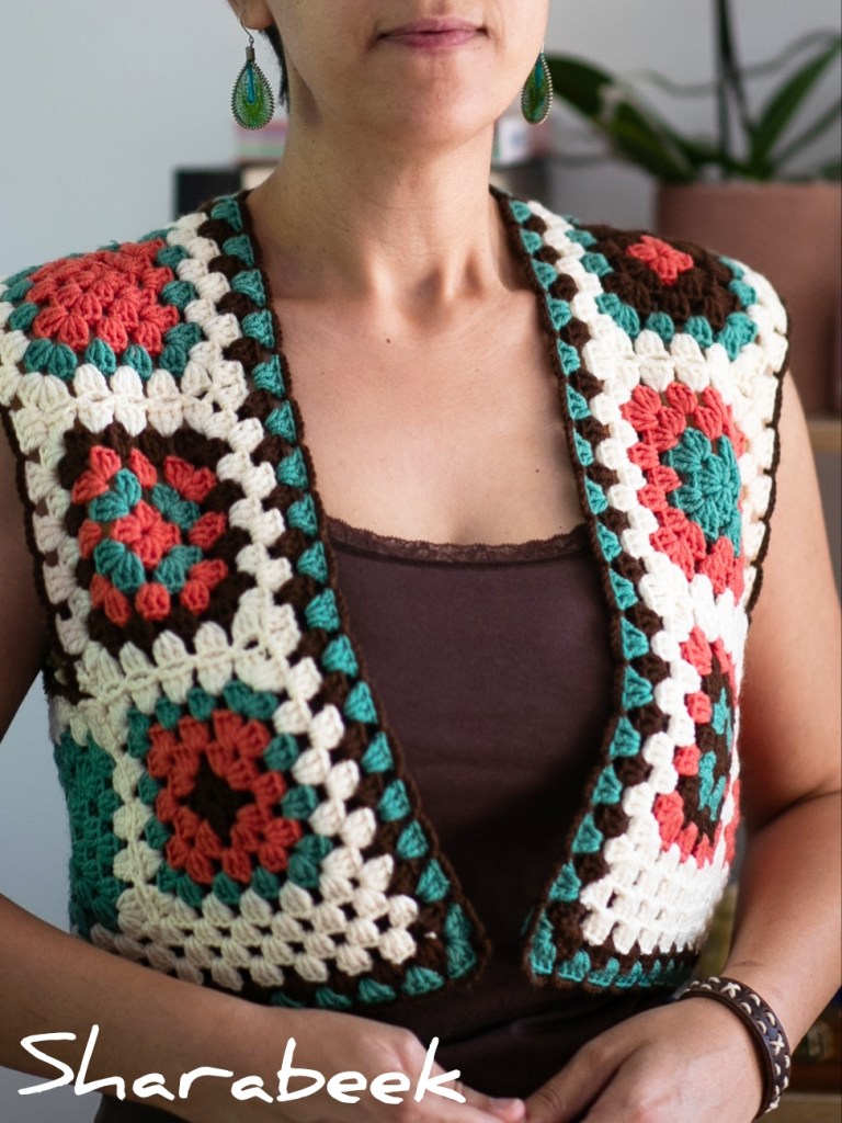 Gilet en crochet, fabriqué à partir de coton naturel et d’acrylique premium de haute qualité, réalisé à la main en France.