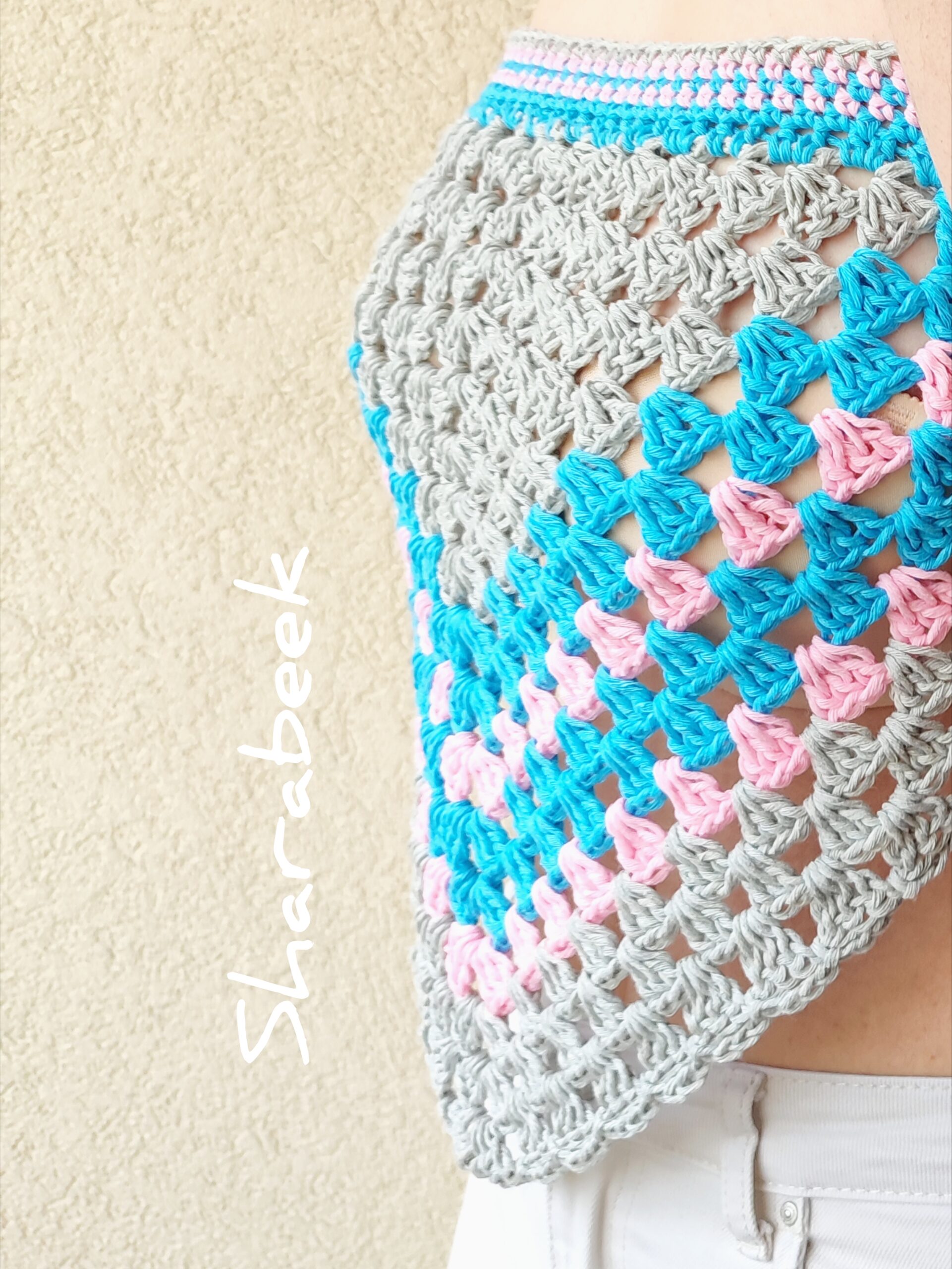 Top Crop Bohème en crochet 100% Coton, réalisé à la main en France.