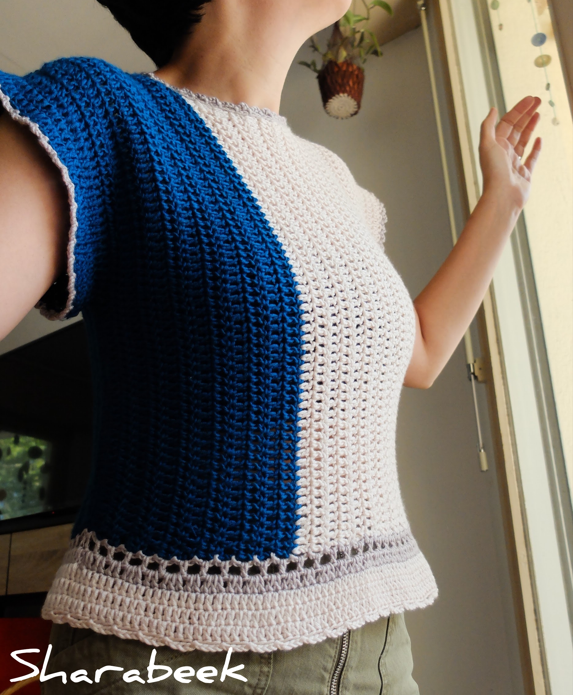 Top en crochet 100% Premium Mikro acrylique (Saten), réalisé à la main en France.