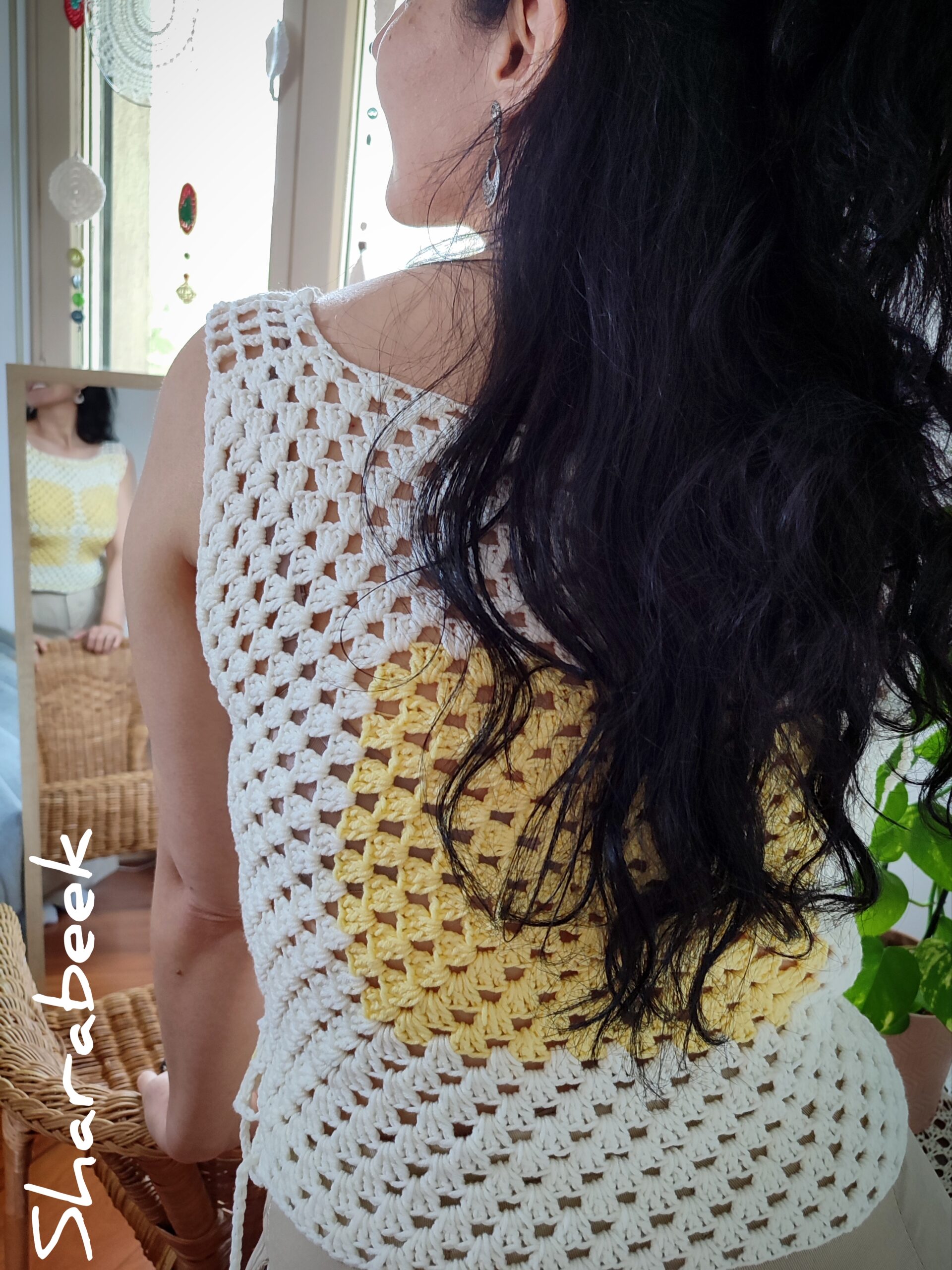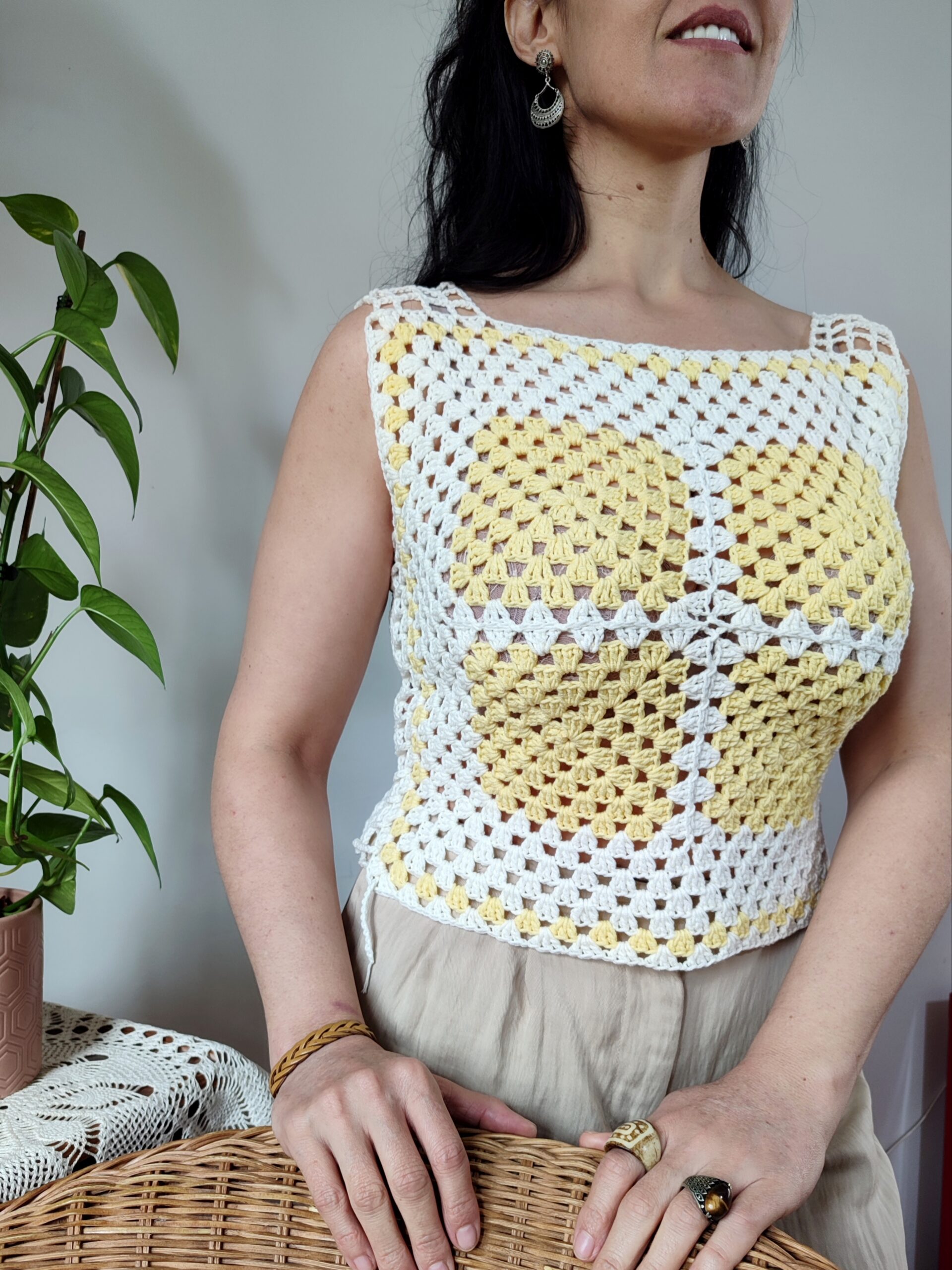 Top d’été en crochet, fabriqué à partir de fils de haute qualité, réalisé à la main en France.