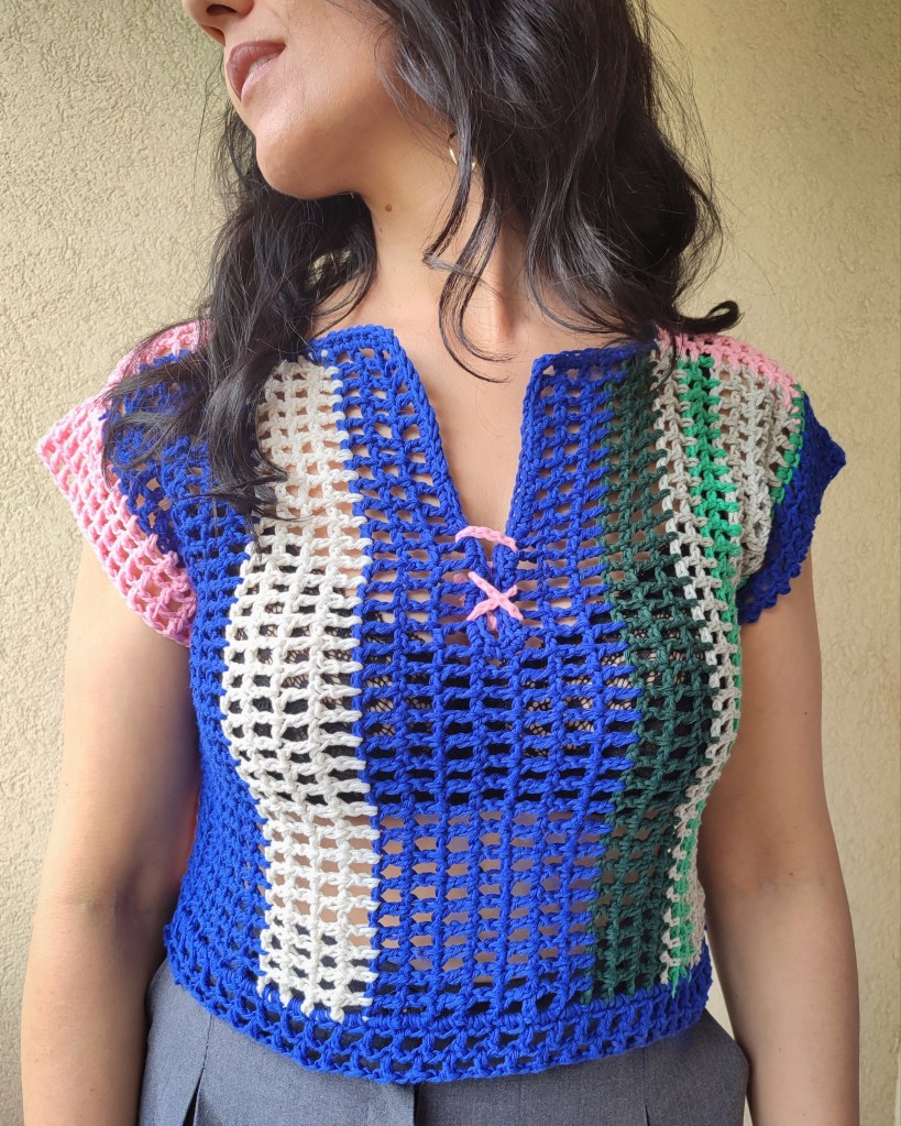 Crop top en crochet 100% Coton recyclé , réalisé à la main en Paris.