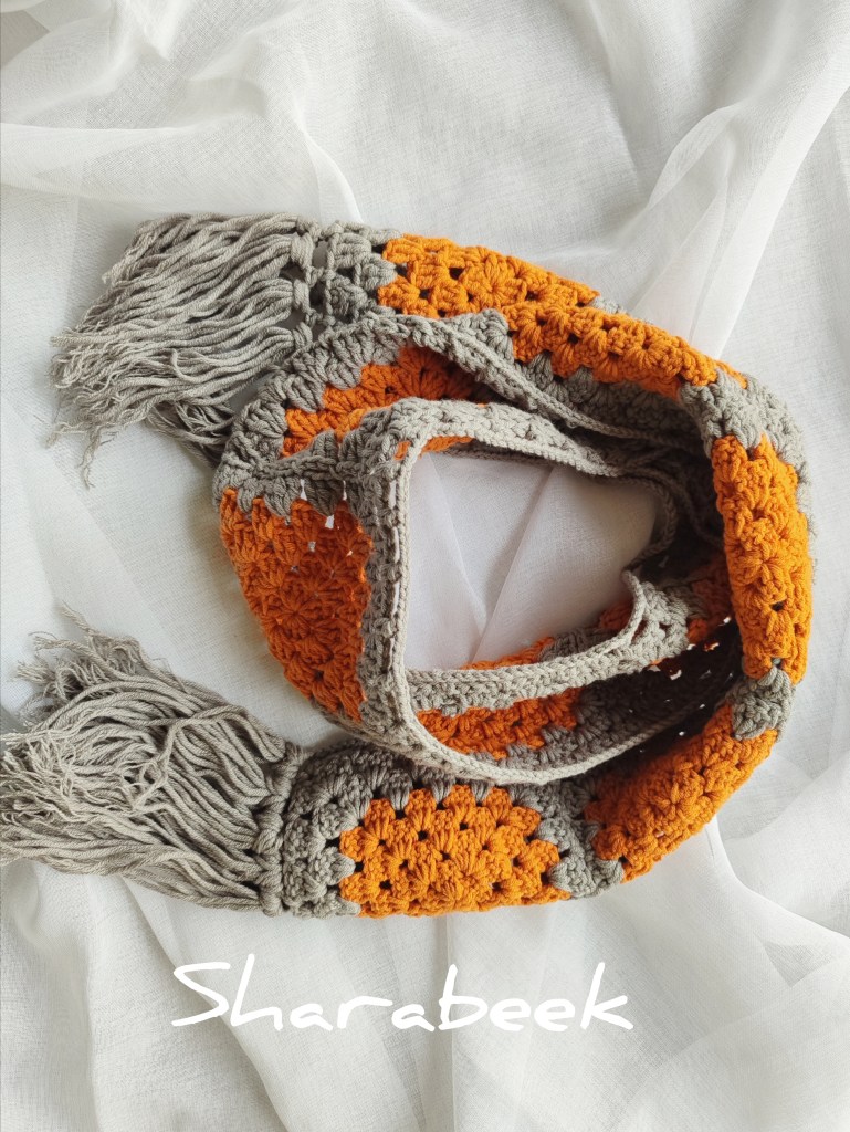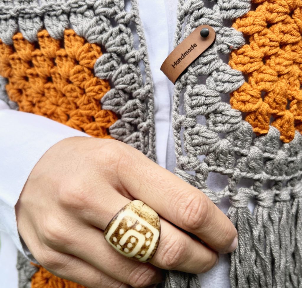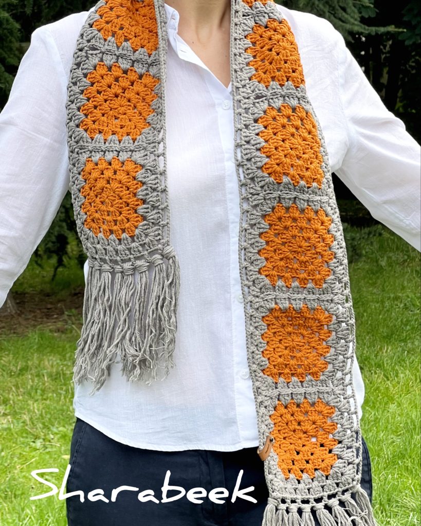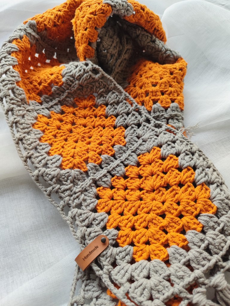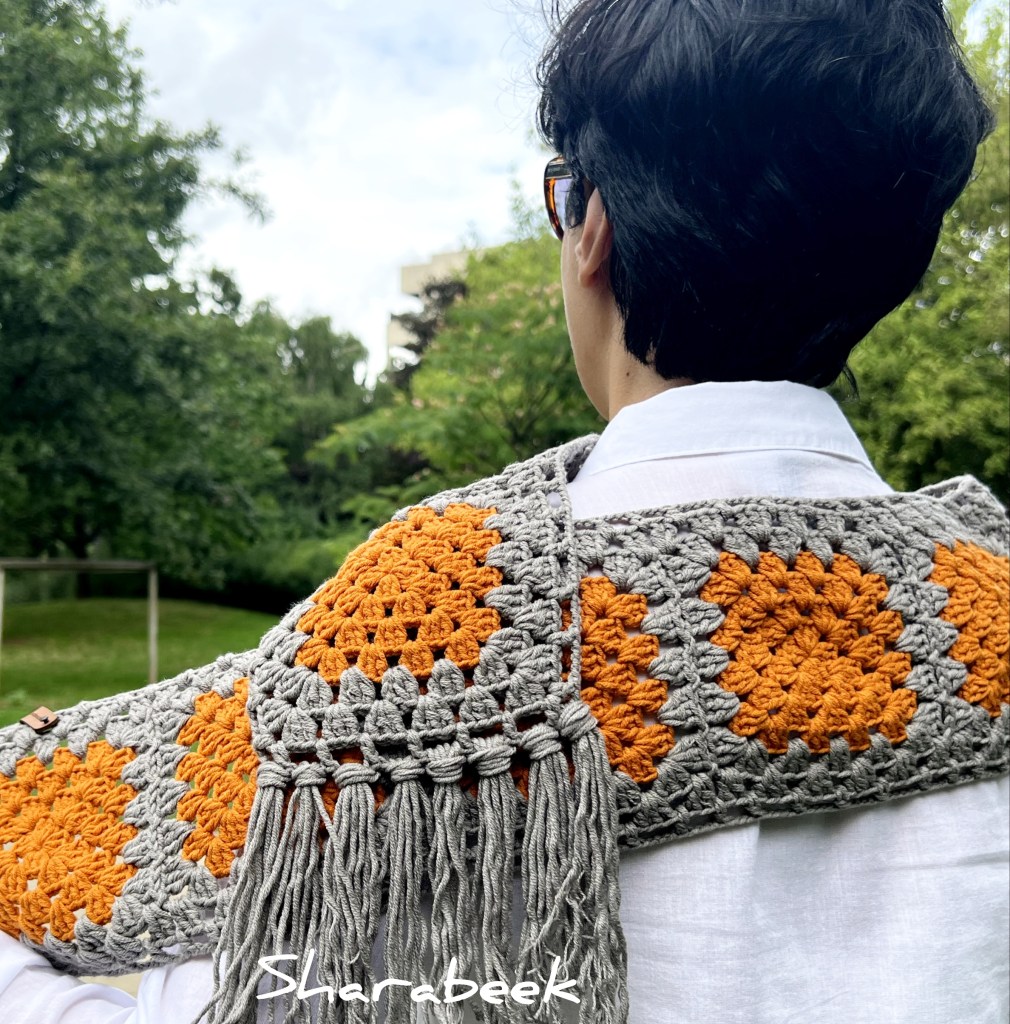 Ce châle est conçu à partir de carrés de “granny square” qui nous rappellent le passé et les grands-parents, mais nous l’avons conçu avec une vision moderne pour les amateurs de mode.