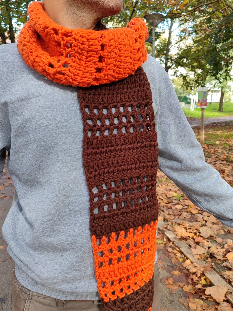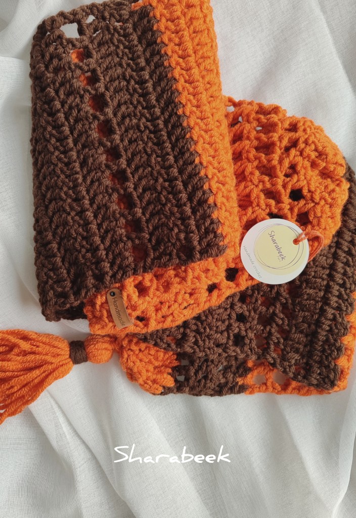 Châle Unique, Unisex , fait la main en Crochet . Les couleurs de ce châle sont inspirées de l’automne. Faites de votre look un moment inoubliable avec ce châle envoûtant, une véritable œuvre d’art portée