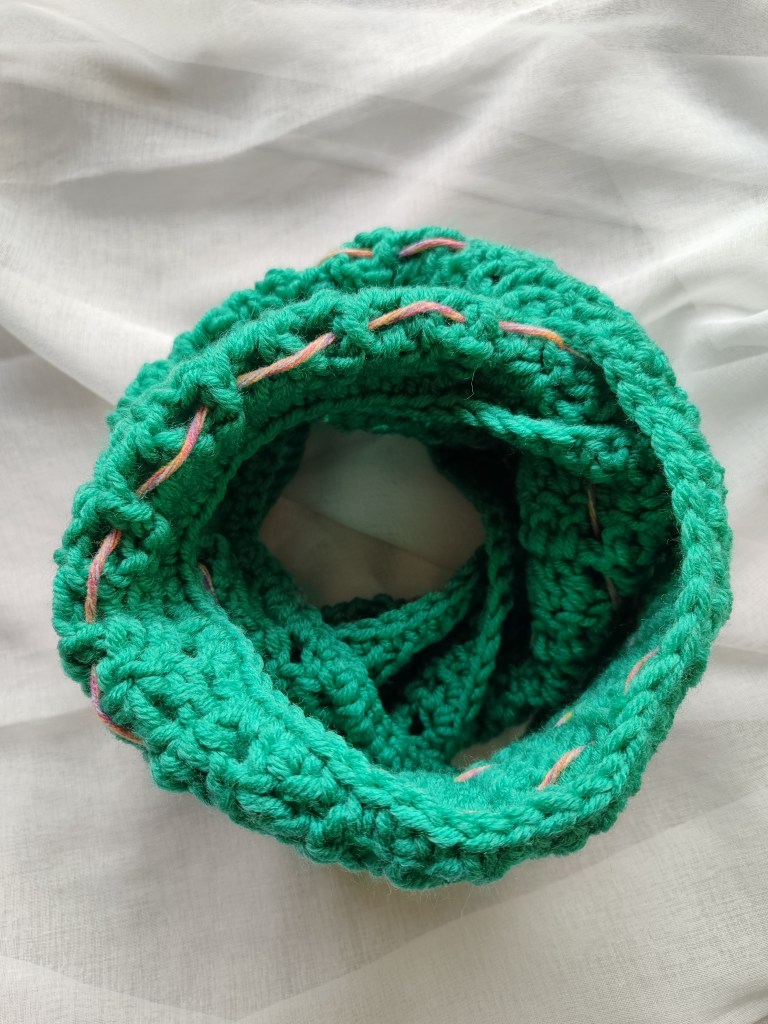 Ce châle (snood) au crochet est un accessoire confortable et chaud qui vous permettra d’affronter l’hiver en toute sérénité.