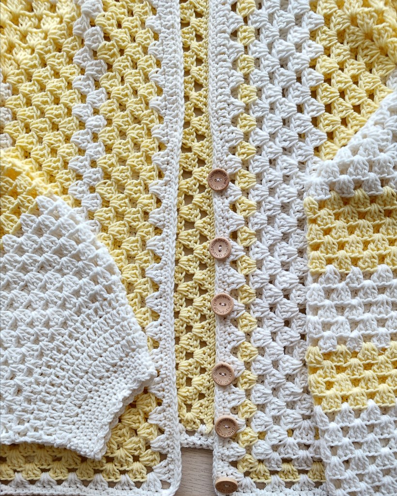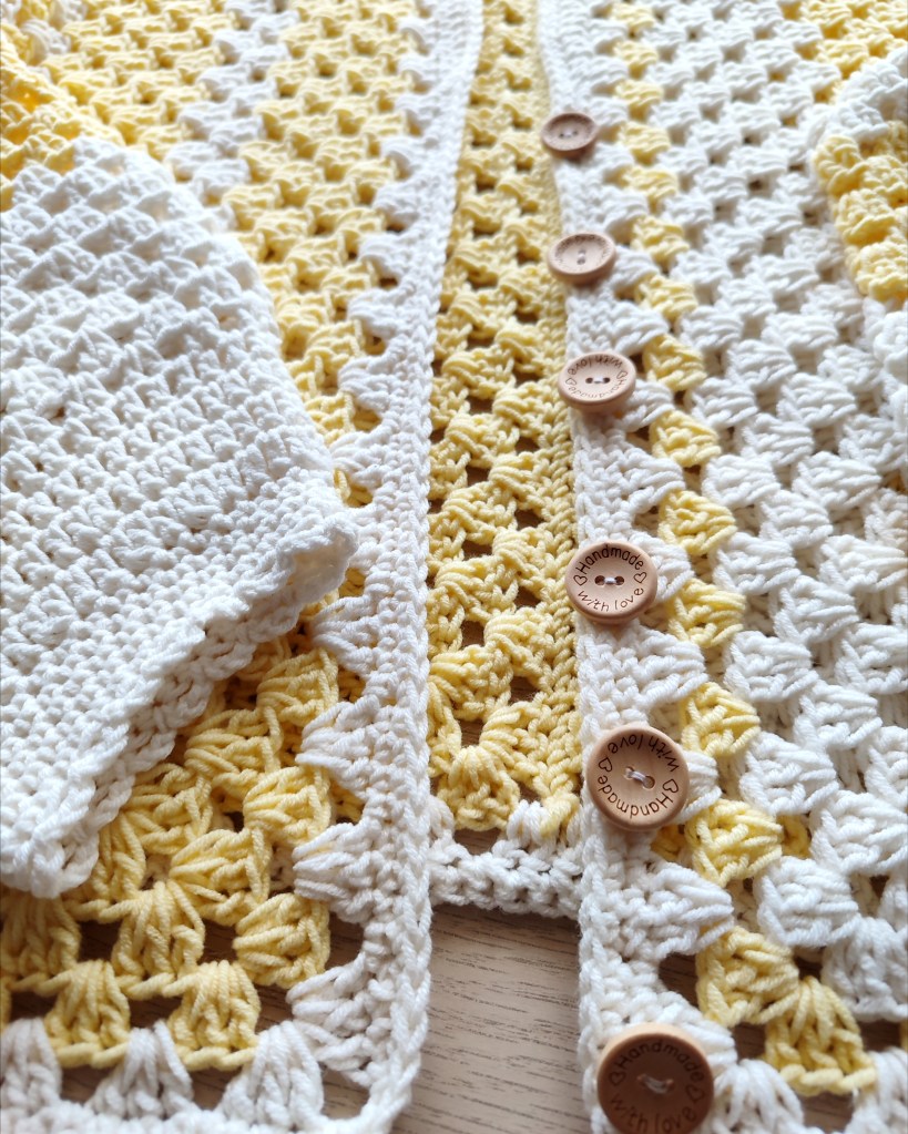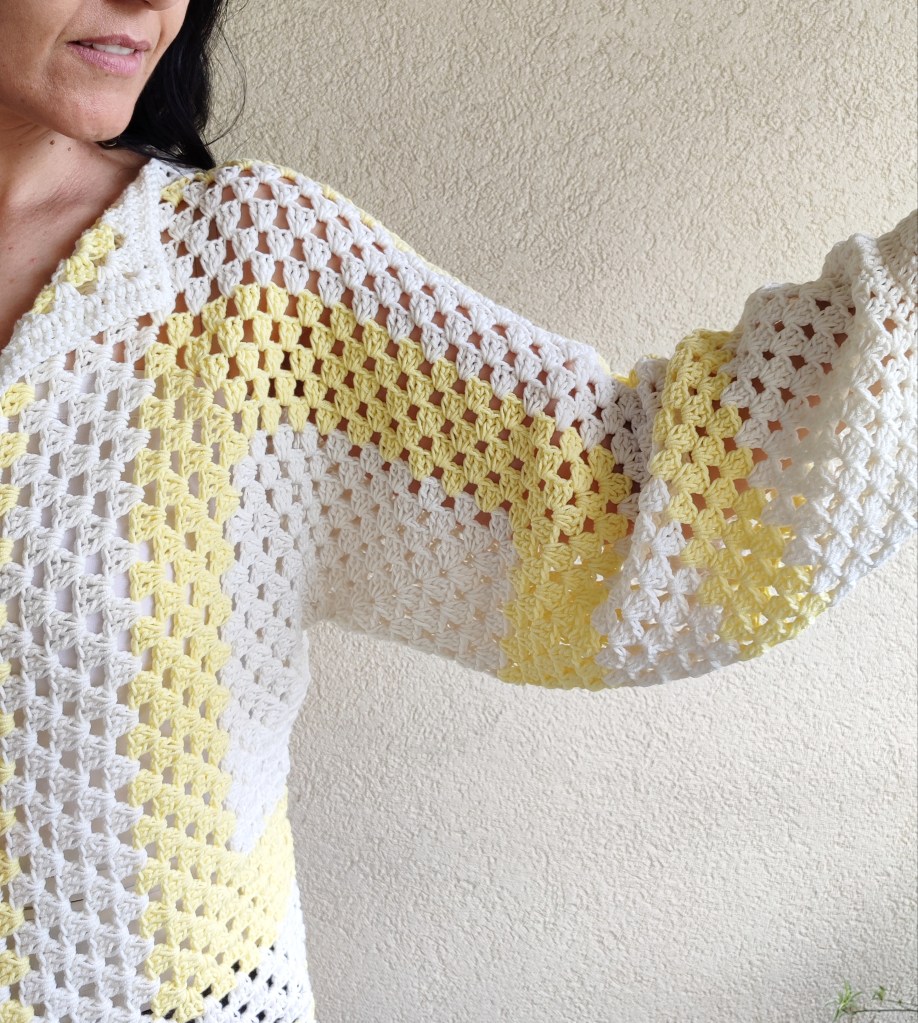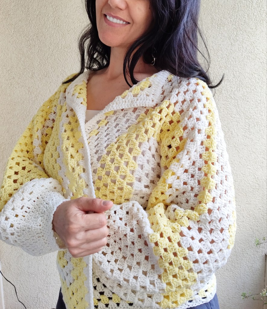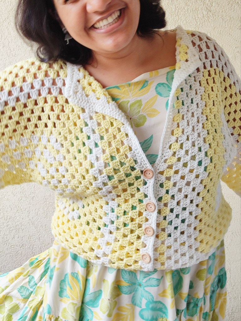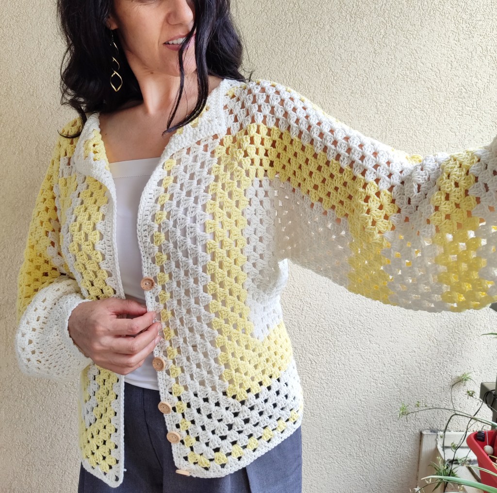 Cette magnifique veste est fabriquée à la main à partir de fils de haute qualité, le design est inspiré par les couleurs de Logo Sharabeek, conçu et crocheté sous forme de carrés imbriqués.