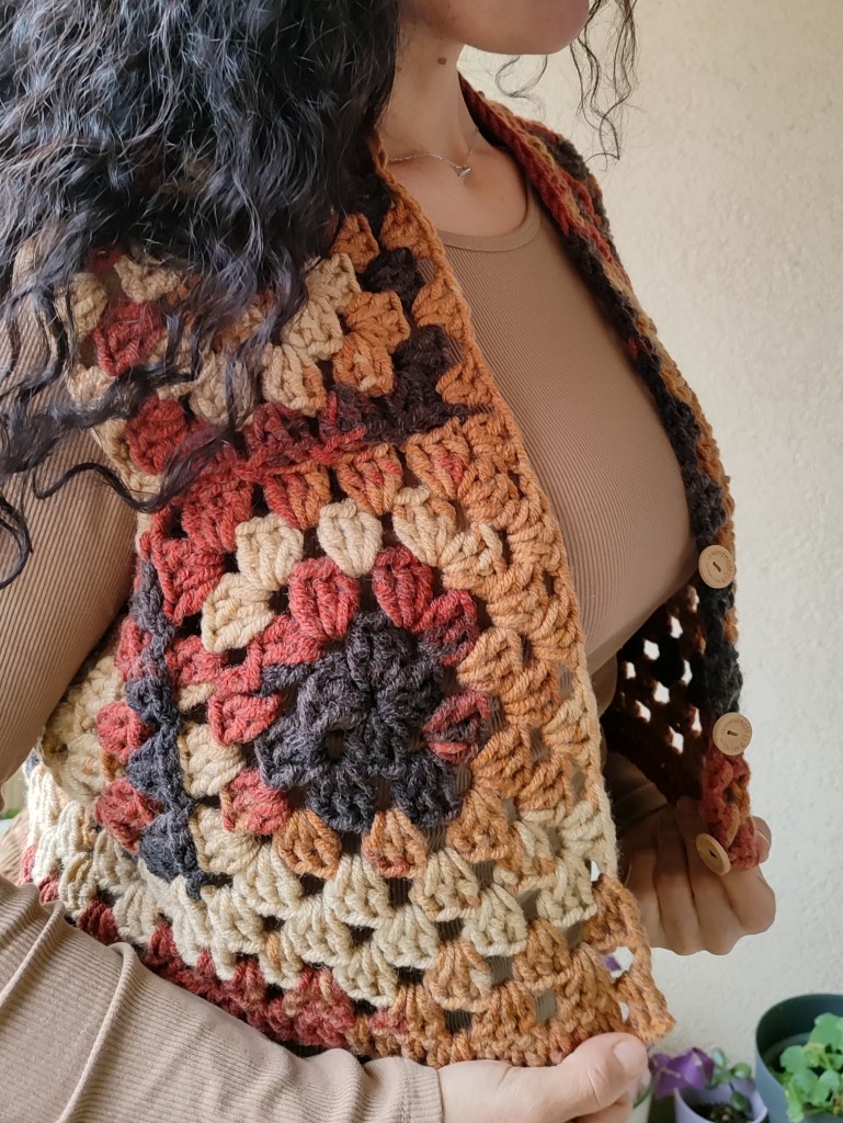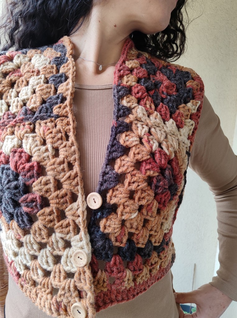 Ce gilet particulier est une pièce unique, caractérisée par ses couleurs automnales harmonieuses et la qualité de ses fils durables. Il s’agit d’une belle pièce que vous pourrez porter en automne et en hiver lors d’occasions formelles ou décontractées, fabriquée à la main avec beaucoup de soin et de savoir-faire, sa fabrication a nécessité 20 heures de Crochet.