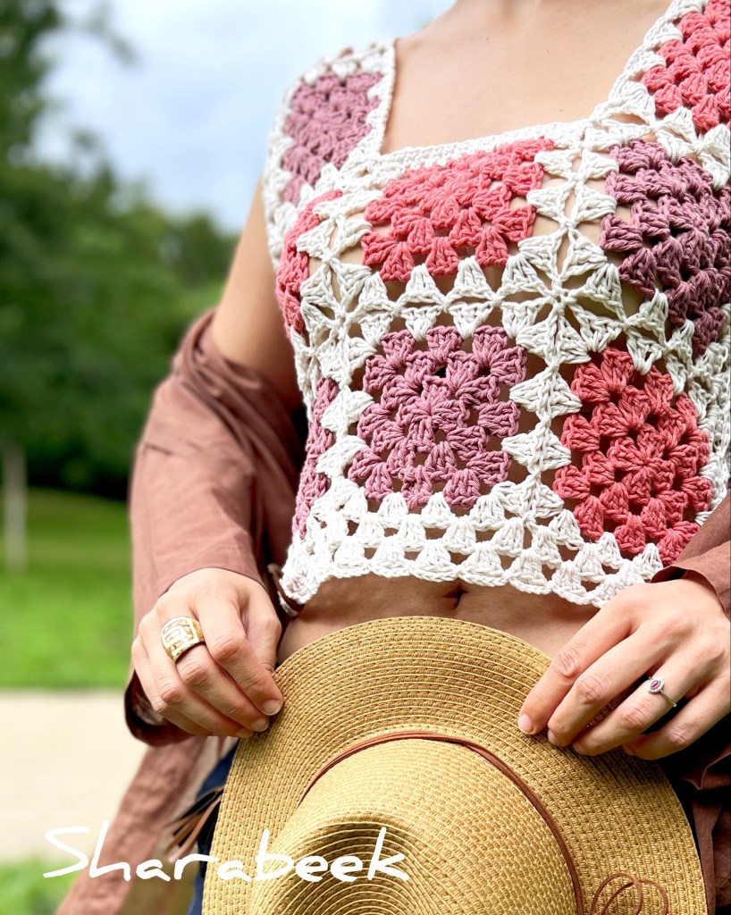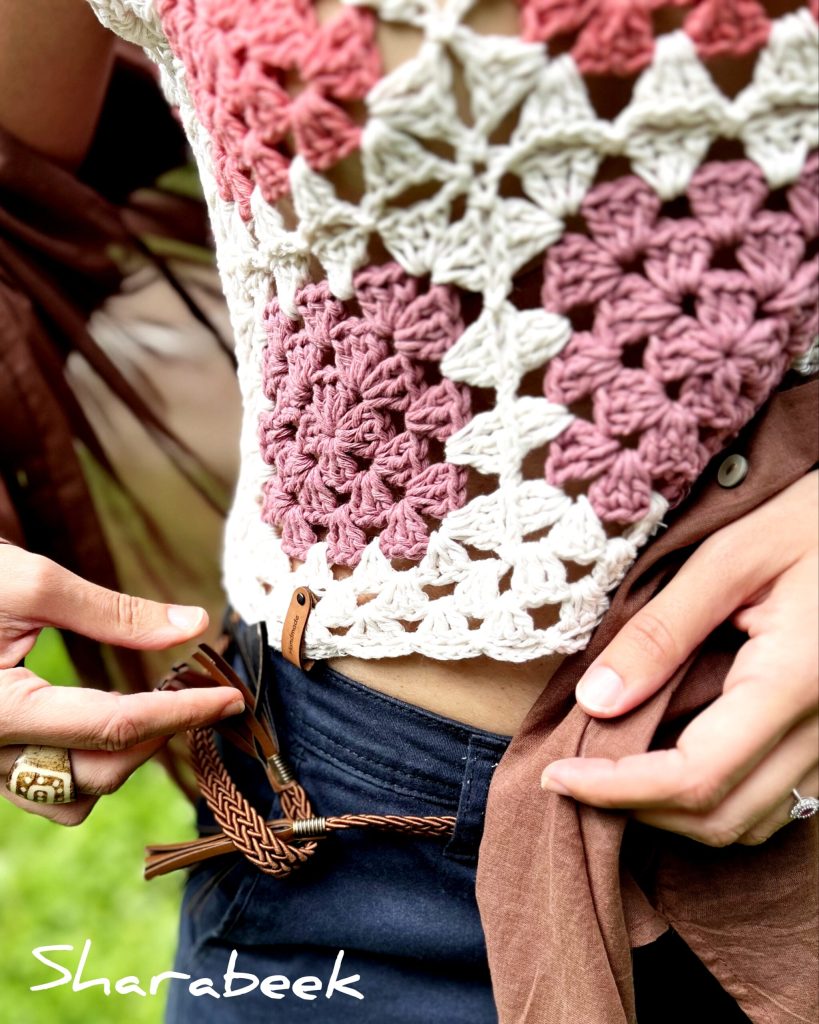Top en crochet 100% coton de couleurs naturelles, réalisé à la main en France.