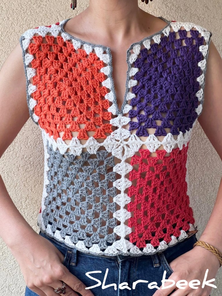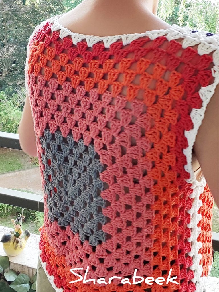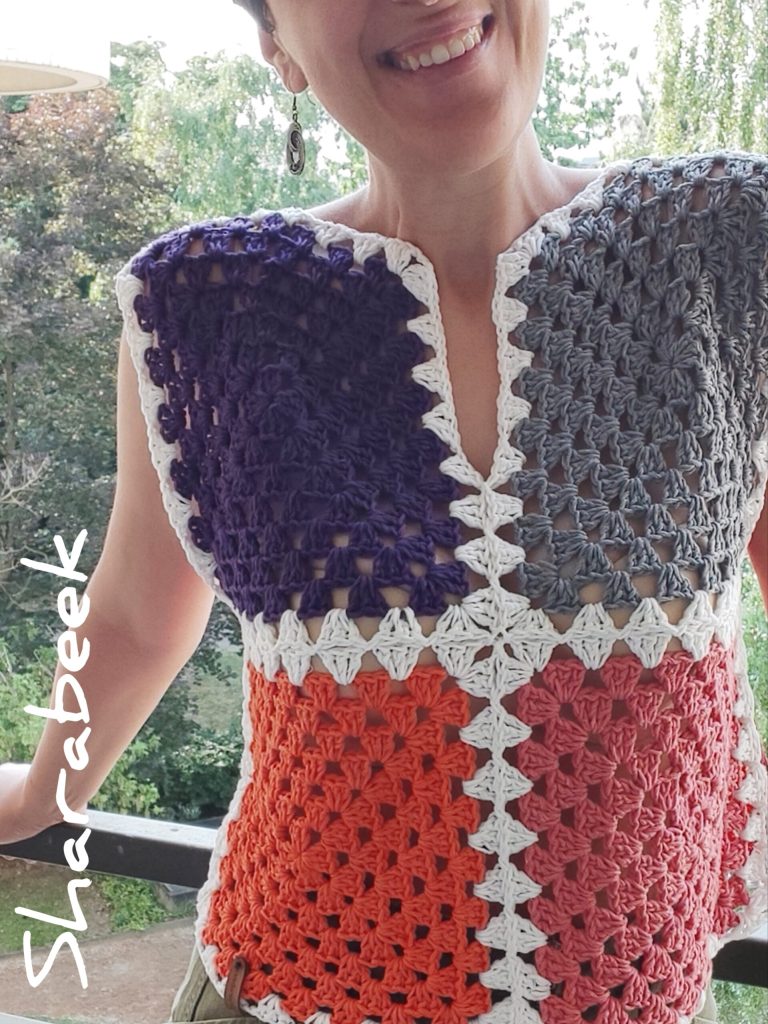 Top Granny en crochet, 100% Coton Recyclé, réalisé à la main a paris.