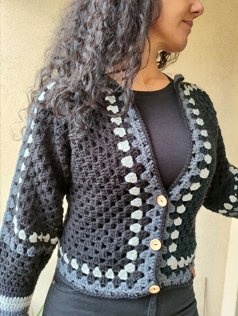 Cette veste en crochet, unique en son genre, a été conçue et fabriquée avec le plus grand soin et une attention particulière aux détails. Ses couleurs audacieuses s’entremêlent pour créer une pièce exceptionnelle.