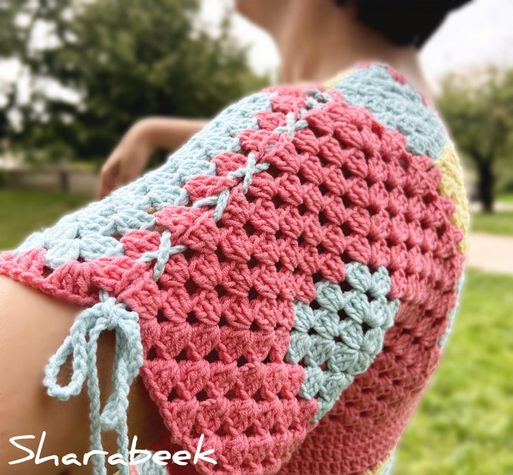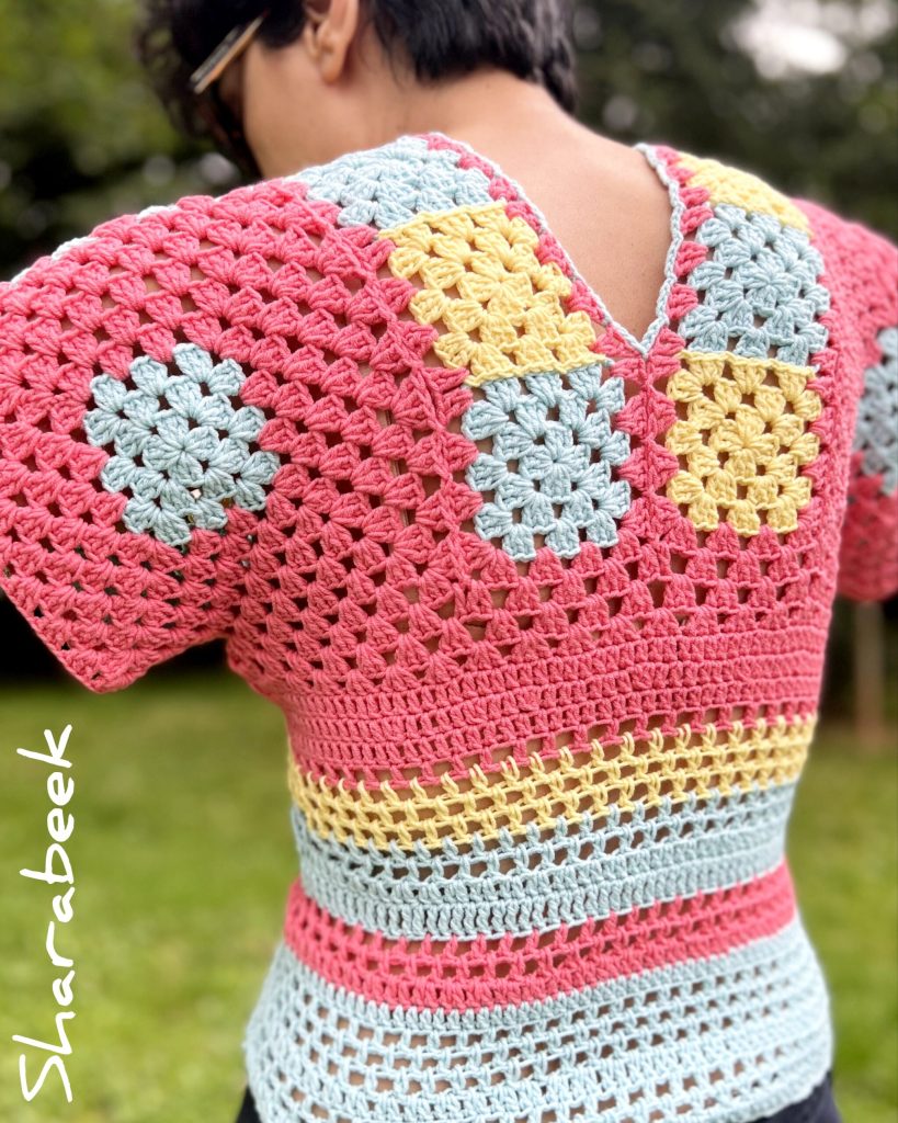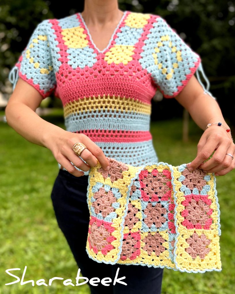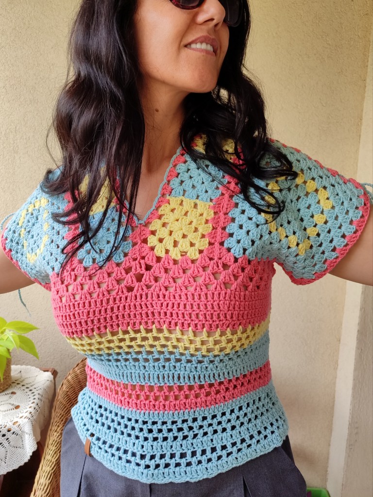 Fabrication :Ce top a nécéssité 16 heures de cochet à la main pour être créé.