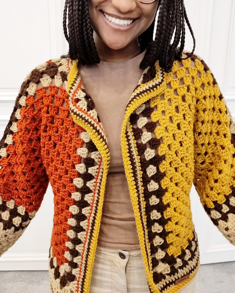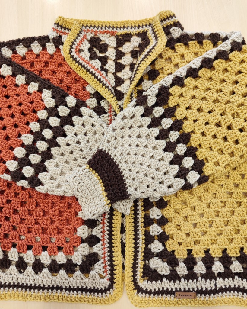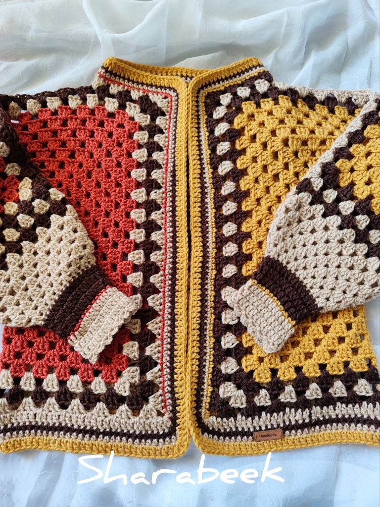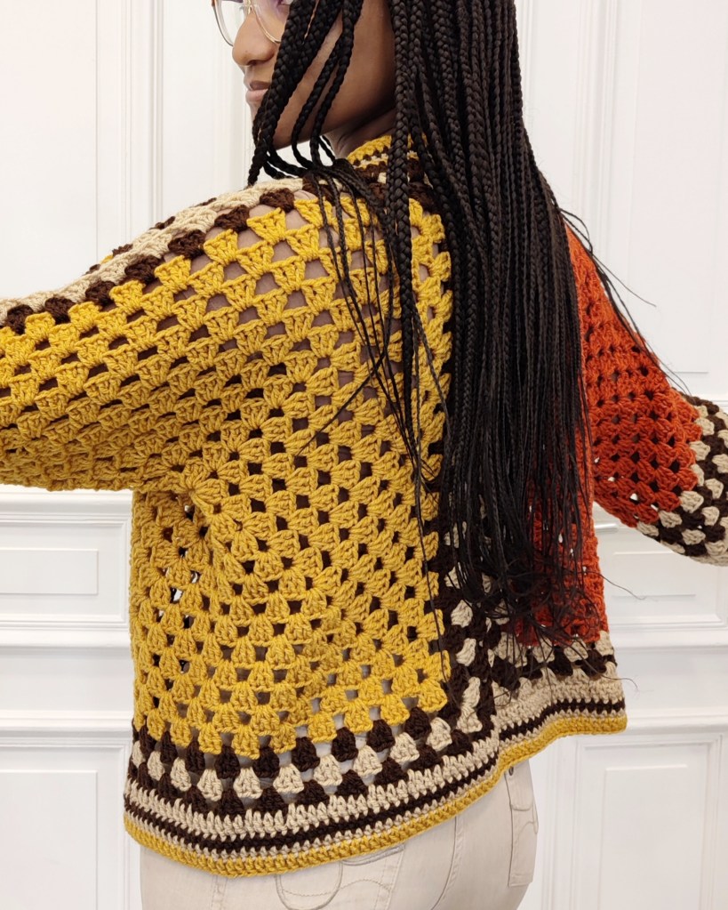 Cette magnifique veste est fabriquée à la main à partir de fils de haute qualité, conçu et crocheté sous forme de carrés imbriqués.