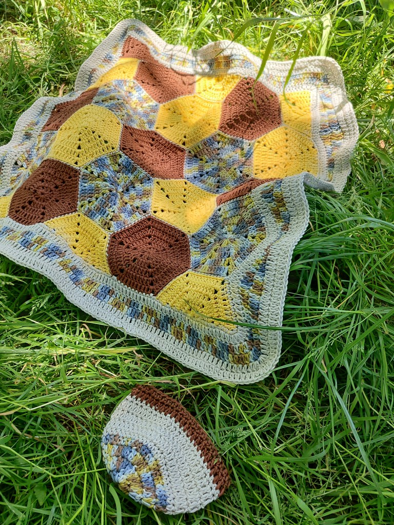 Offrez à votre nouveau-né (0 à 1.5 ans) un havre de paix et de tendresse avec notre couverture crochetée à la main avec un bonnet en coton doux (fil de coton 100% bio)