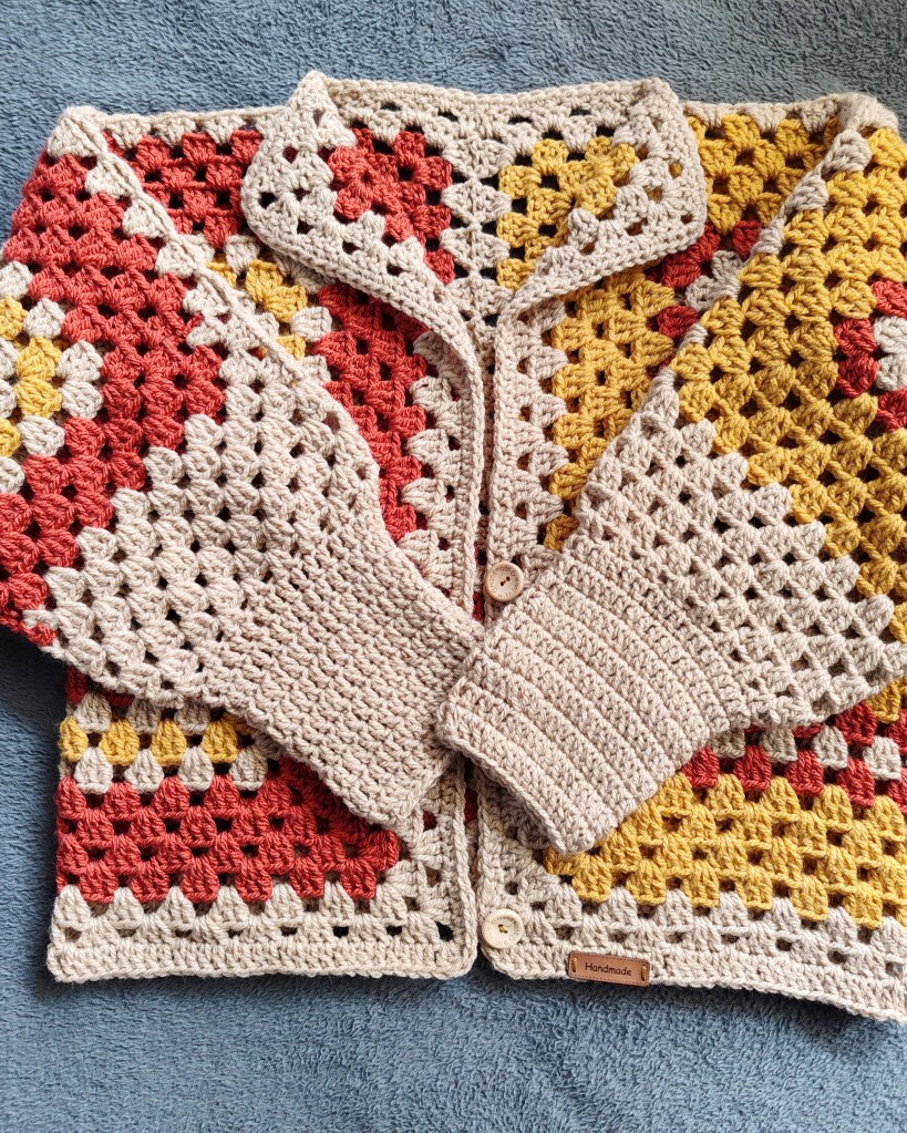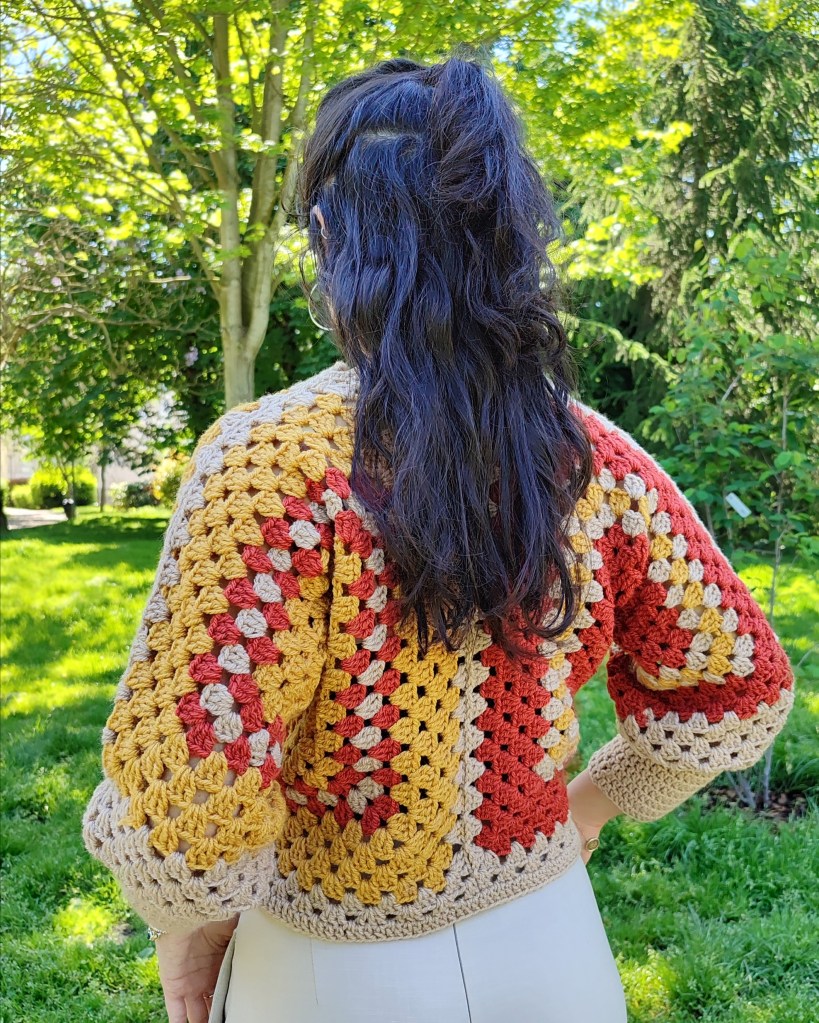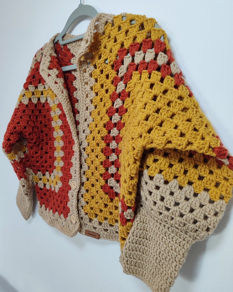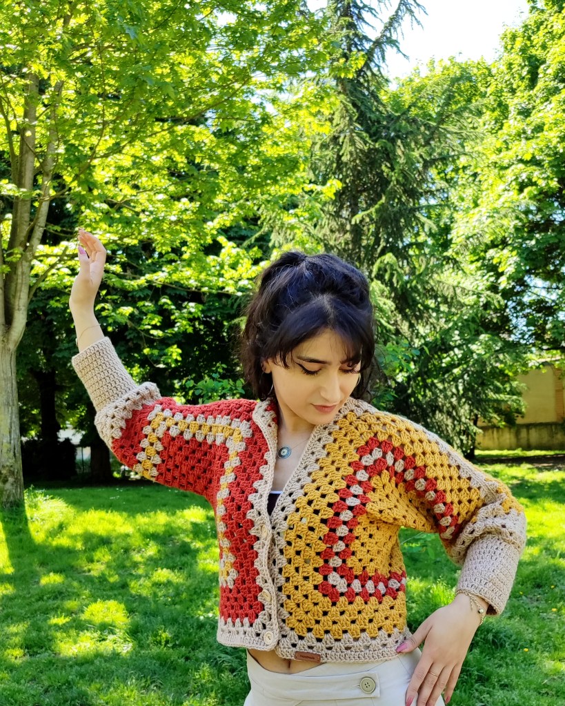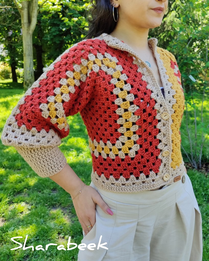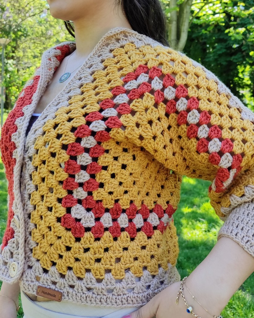 Cette magnifique veste est fabriquée à la main à partir de fils de haute qualité, conçu et crocheté sous forme de carrés imbriqués.